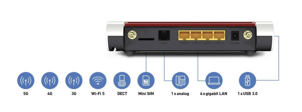 Deze router is uitgerust met meerdere aansluitmogelijkheden. Je vindt onder andere vier Ethernet-poorten voor bekabelde verbindingen, een aansluiting voor analoge telefoons en een USB 3.0-poort voor het aansluiten van externe opslagapparaten. Met deze veelzijdige aansluitingen ben je verzekerd van een stabiele verbinding voor al je apparaten.