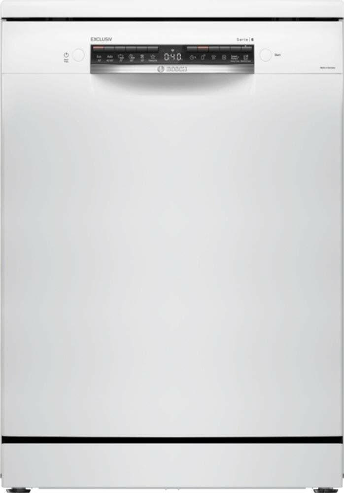 De Bosch SMS6TBW00F is een vrijstaande vaatwasser uit de Serie 6 Exclusiv-lijn, uitgevoerd in stijlvol wit. Met ruimte voor maar liefst 13 couverts is dit model ideaal voor gezinnen of huishoudens die dagelijks veel vaat hebben. Dankzij de energieklasse A werkt hij bijzonder zuinig: per wasbeurt gebruikt hij gemiddeld slechts 9,5 liter water en 0,54 kWh stroom. Daarbij is hij met een geluidsniveau van 44 dB ook nog eens fluisterstil, waardoor hij zonder problemen ’s nachts kan draaien.