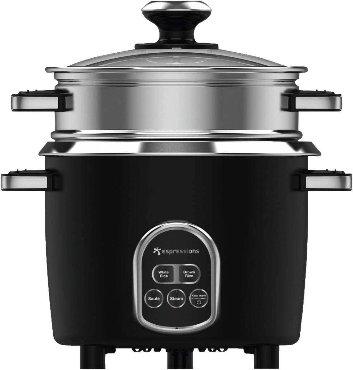 Ontdek de Espressions EP6200 Sauté Rijstkoker, de perfecte oplossing voor het bereiden van perfect gekookte rijst en andere graangewassen. Met een royale capaciteit van 1,4 liter kun je tot 7 kopjes rijst tegelijk bereiden, wat ideaal is voor gezinsmaaltijden of een diner met vrienden.
